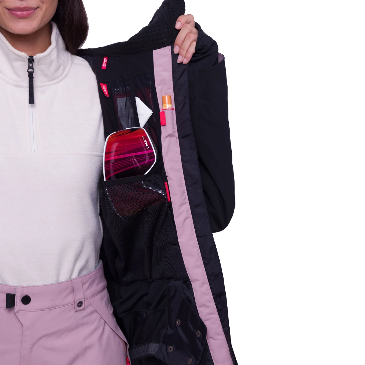 - Internal goggle+goggle lens+stash pocket