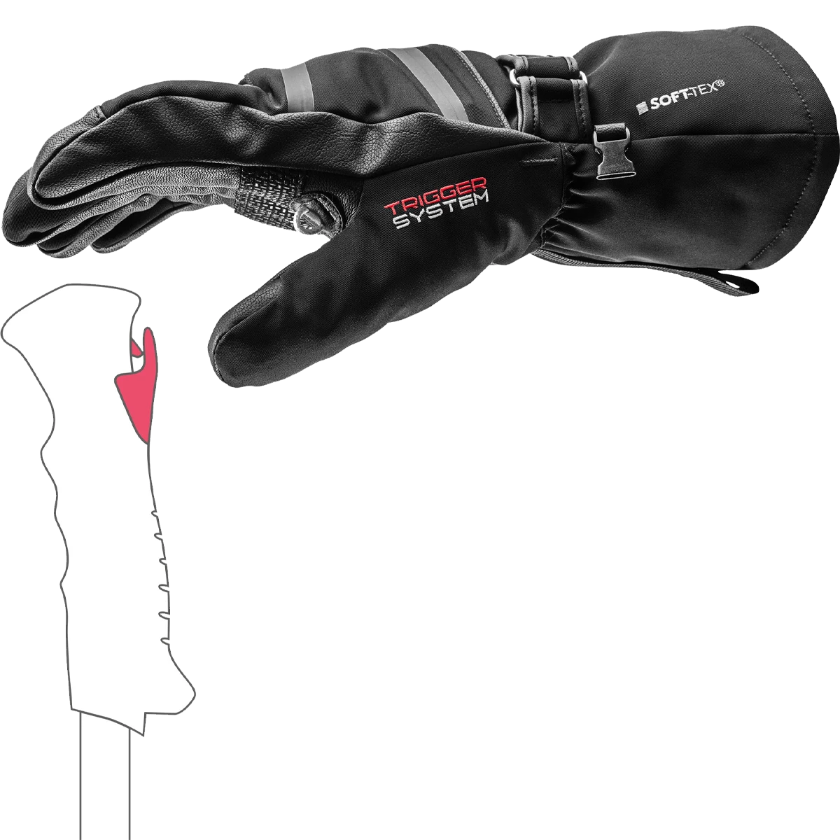The DETECT 3D is the ideal glove for skiers looking for exceptional warmth. These waterproof gloves offer all the features and benefits of an expedition glove combined with a sleek finish perfect for the slopes. With Primaloft filling and a SOFT-TEX waterproof membrane, these gloves ensure that your hands stay warm and dry even in the harshest winter conditions. The maximum insulation provided by these top-quality gloves guarantees optimal warmth and comfort. Packed with features, the DETECT 3D gloves are your ideal companion from the first chair to the last, even in the most brutal weather conditions. The DETECT 3D includes a zipped Heat Pocket allowing you to insert a heat pouch for additional comfort when things get exceptionally chilly. The DETECT 3D also comes with a leash, so you can take your gloves off when needed without the risk of losing them off the lift. The innovative Double Gauntlet keeps the snow outside your gloves where it belongs!